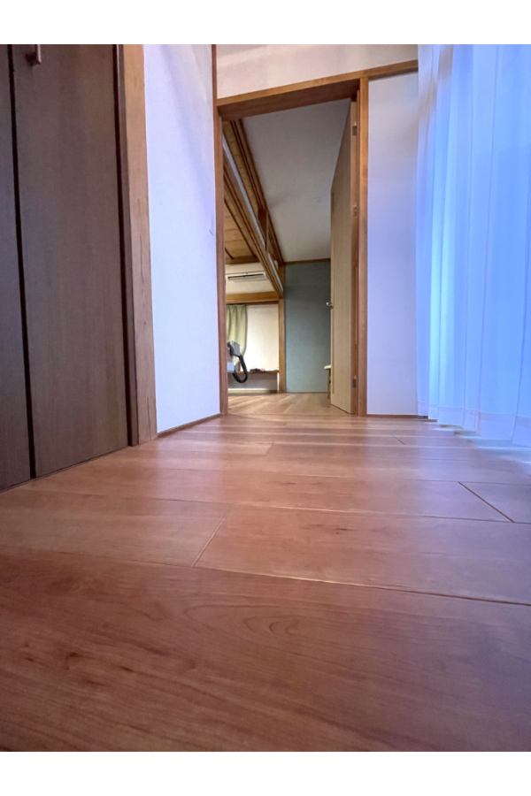元々廊下から和室へ行く際には段差がありましたが、段差も解消して車いすでも移動しやすい広い寝室をつくりました。